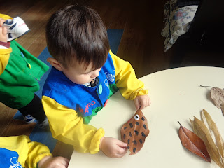 Follas,castañas e cogomelos para xogar e traballar a psicomotricidade,a estimulación lingüística e a creatividade.
