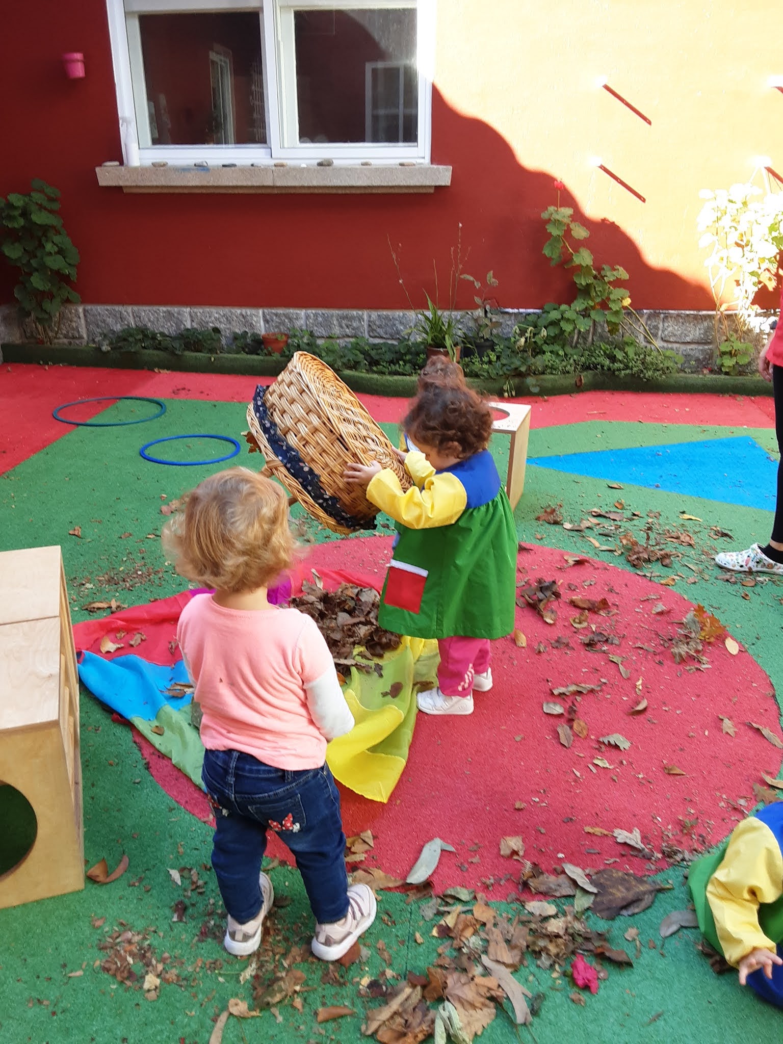 Instalacións,móbiles e xogos coas follas secas das árbores.